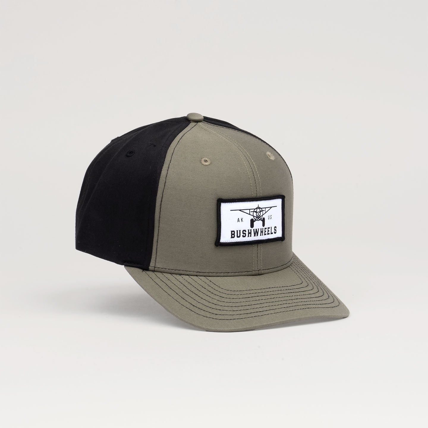 The woven Alaskan Bushwheels Patch is on a sturdy 112 trucker-style cap, popular for its undeniable quality and comfort.